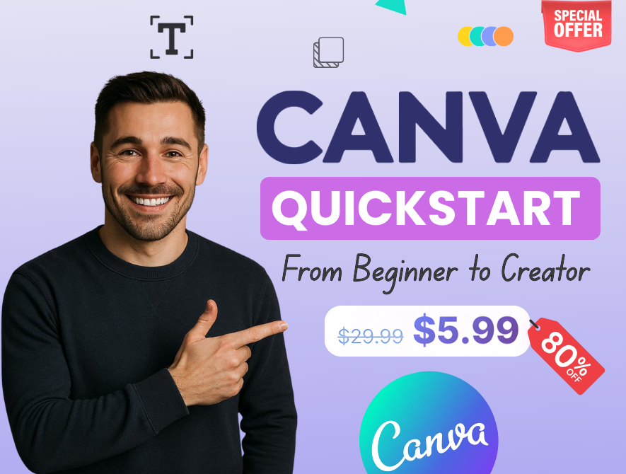 A beginner-friendly Canva course to help you create professional designs for work, business, or freelancing.