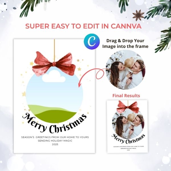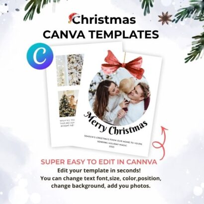 Editable Christmas Card Template for Canva — create your own greeting card with a personalized photo and custom text. Make this Christmas extra special with a card that speaks from the heart.